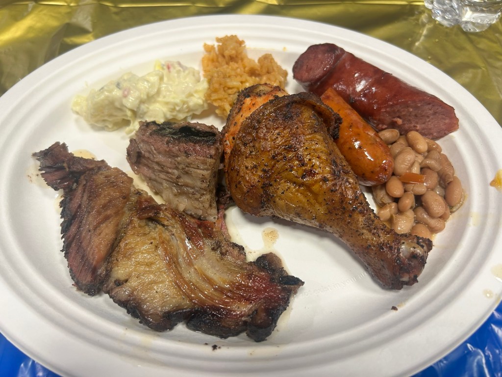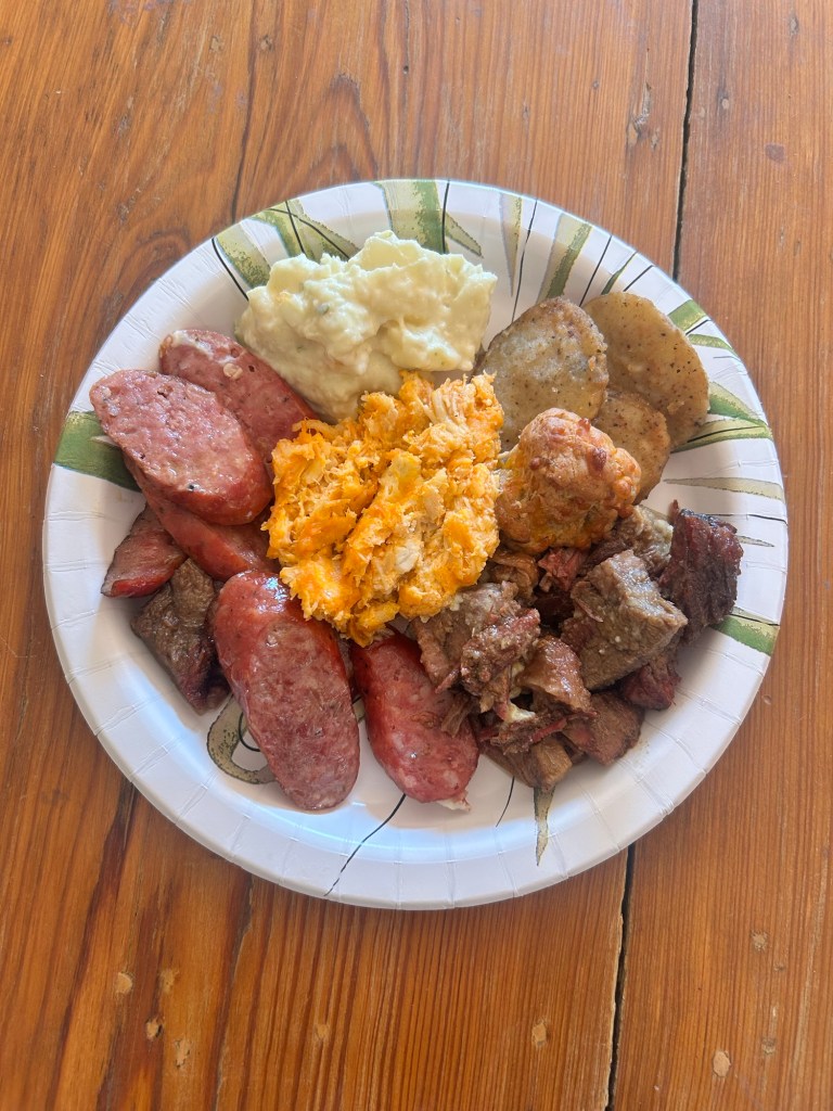 The drive back was not as bad. It was heavy rain for about 30 min but lessened up and eventually just became a heavy due. We passed on lunch for a little joint out of town about half-way home called Cooper’s BBQ. Fantastic food. Teegan had never been and I think he was at first not sure what to make of the place. It’s a Texas staple and of course he liked it. We tired a little bit of everything. Chicken, pork tenderloin & ribs, chopped brisket. The works. We left bloated, happy and impressed..